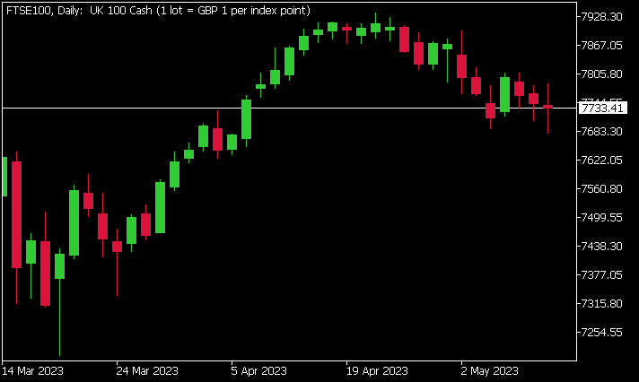 FTSE100 was down by -0.14% at 7733.41.
