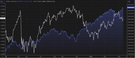 These data trends have filtered into in the market itself. The divergence between the S&P and US 2-year has been come very apparent as yields unwind from their hawkish bets that ramped up on Q1 data. That spread is becoming an interesting trade – it could close as fast as it has opened if data misses.
