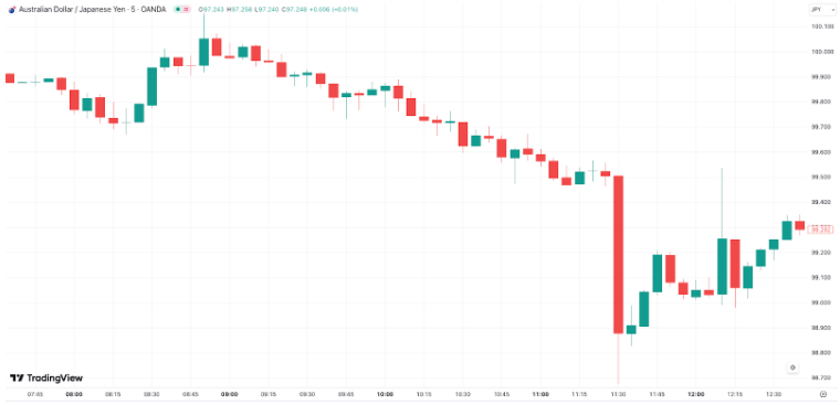 This had led the market and many economists to suggest the possibility of a rate rise has now reduced to sub 10% coming into Tuesday’s meeting. That clearly means that it’s not still a possibility but all things being equal the likelihood now is negligible. You can see that here in the charts of the Aussie dollar particularly against the JPY and the USD