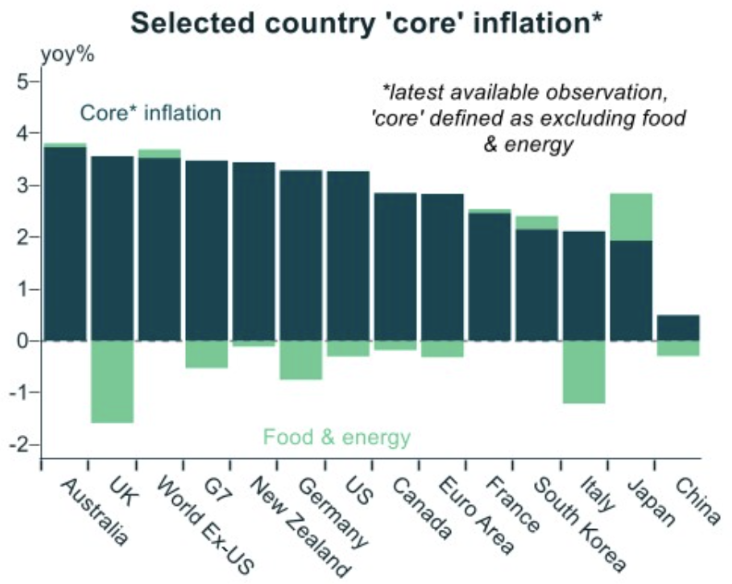 All things therefore being considered the hawkish message coming from governor Bullock is likely to persist. Because as this chart shows core inflation and headline inflation in Australia is the highest against all major peers and despite the RBA having a 2 to 3% target band higher than its peers around 2% it is a long long way away from reaching its goal.