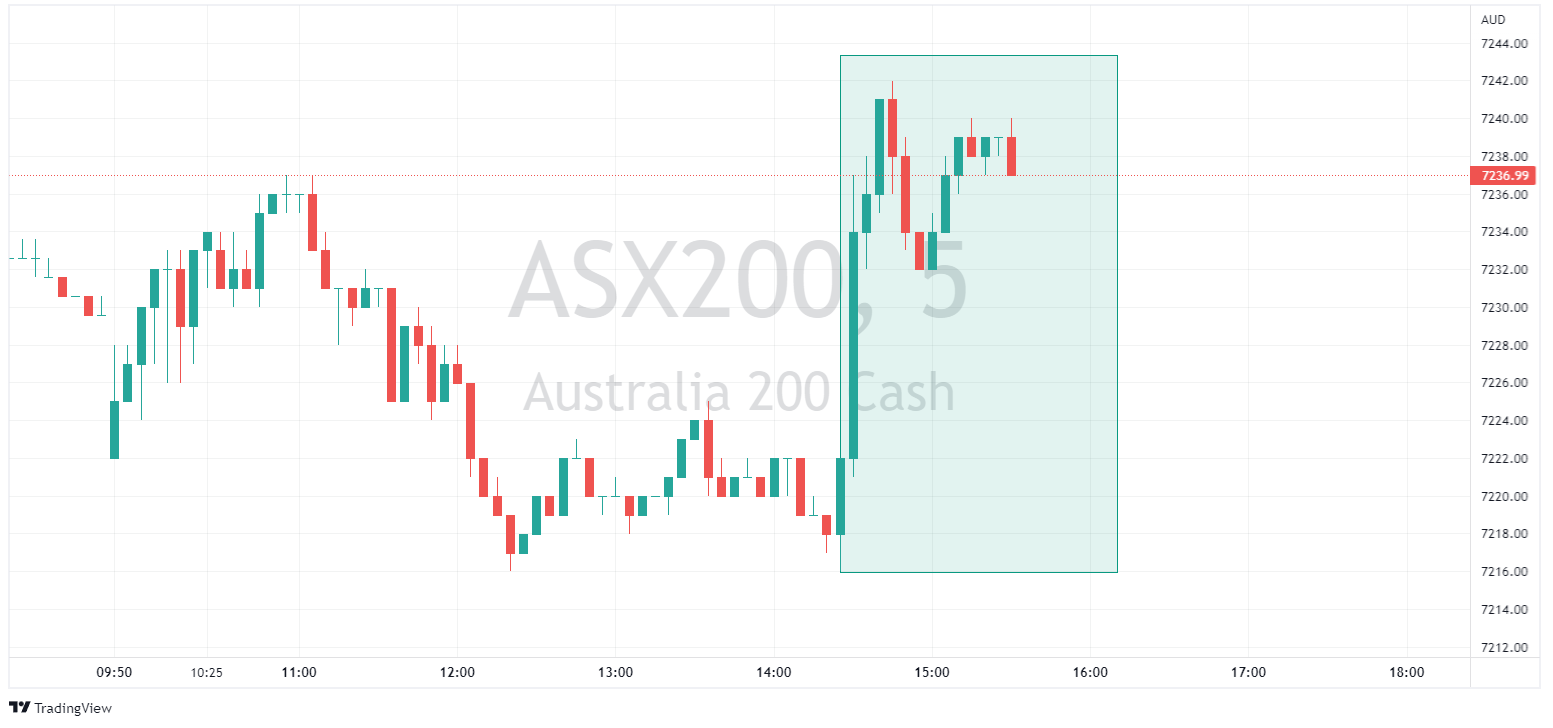 The ASX 200 index saw a mirror reaction to the AUD with the difference being the initial spike was not retraced, showing that equity traders were happy with the RBA taking their foot off the accelerator , even if it just temporary.