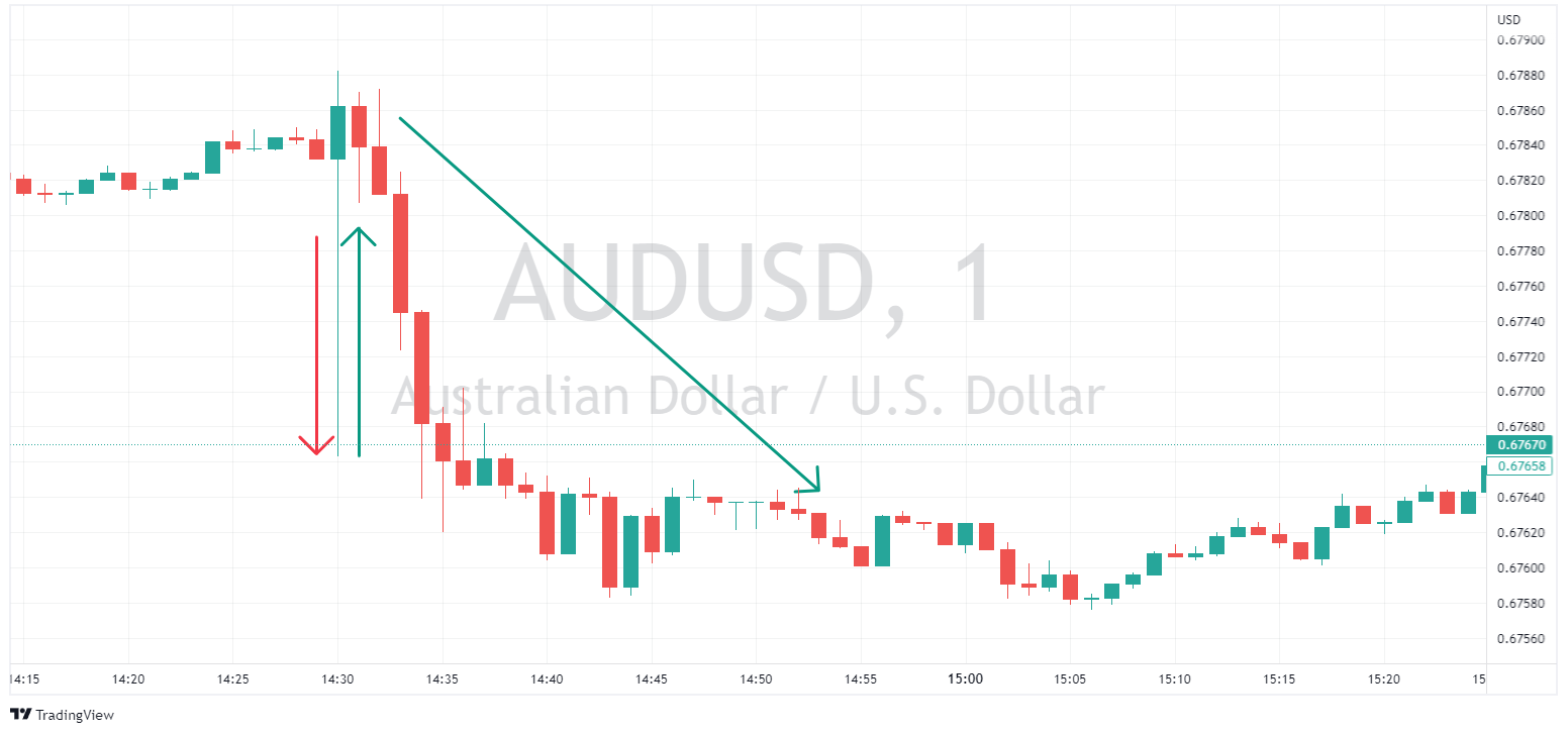 A small difference, but a huge clue in the arcane skill of deciphering Central Bank communications. The AUDUSD behaved fairly predictably, a knee jerk drop on the actual rate announcement, followed by a step retrace as the machines and humans took few seconds to decide whether the statement was hawkish or not, before deciding on the “not” and seeing the AUDUSD resume its downtrend.