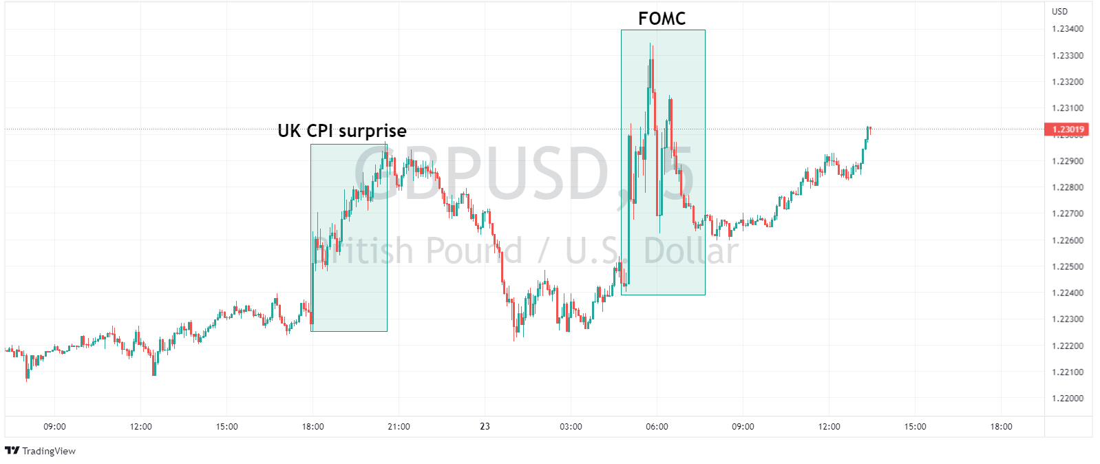 This unsurprisingly saw the GBPUSD rally sharply as the markets repriced the BoE’s actions today, interestingly we can see that the reaction, though a decent move was dwarfed by the volatility seen during and post the FOMC rate decision in this pair. The UK being a world financial hub means the GBP is especially risk sensitive to financial conditions, whether that is global interest rates , banking stress or threats of global growth slowdowns, the actions of the BoE, while still important have taken a seat to these more macro drivers.