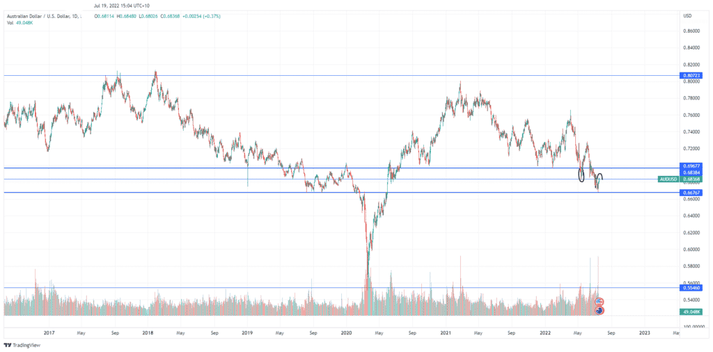 In response to the release of the minutes, the AUDUSD saw a little rise higher. After sitting near its 52-week lows at $0.6681 in recent weeks, the minutes provided a much-needed push. The price of the AUDUSD currently sits at $0.6845 which is its prior support level and has now become a level of resistance. If the AUDUSD can push through this level the next resistance point is at $0.6967.