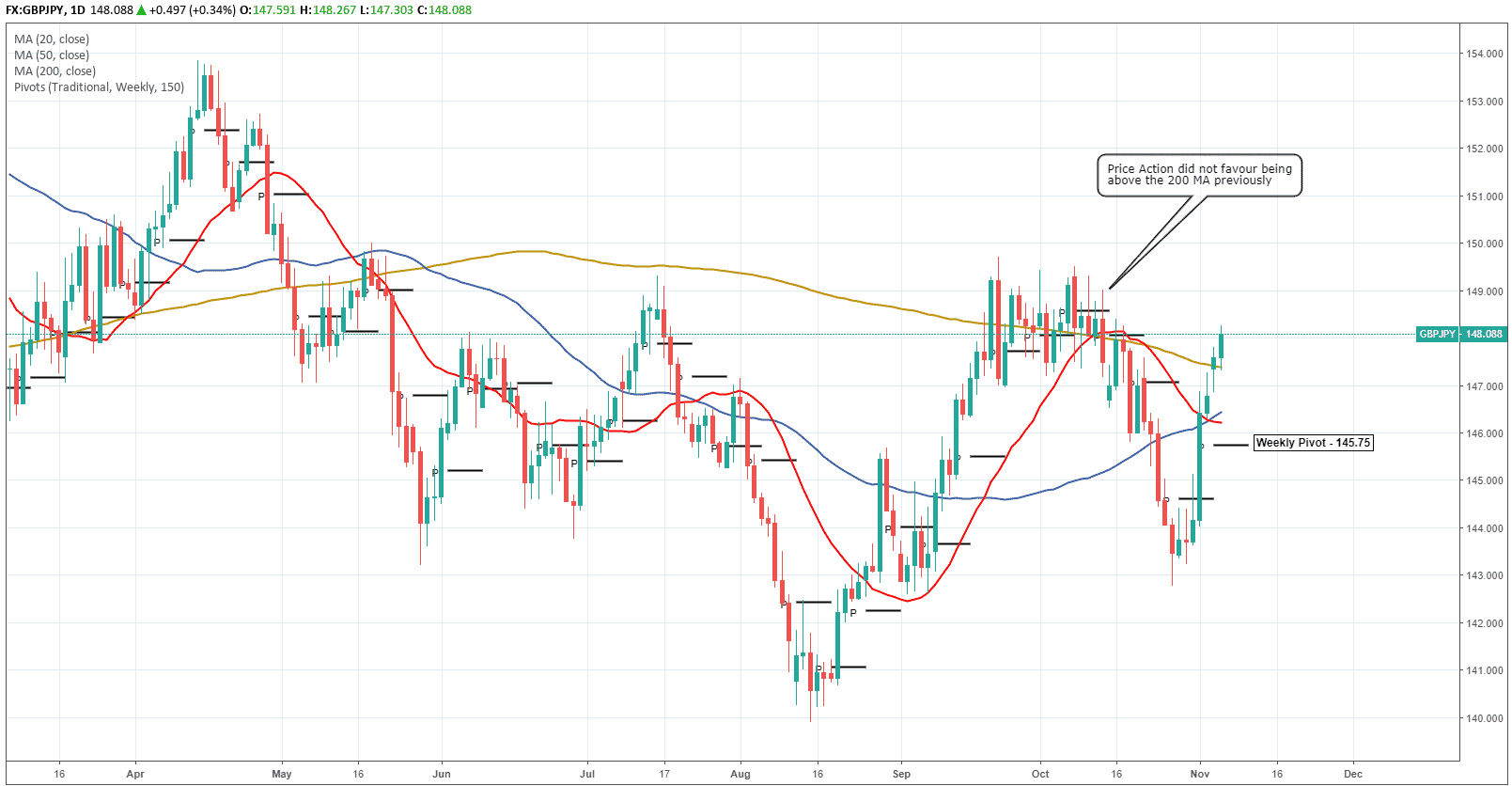 GBPJPY – Looking Shaky Above The 200 Day MA