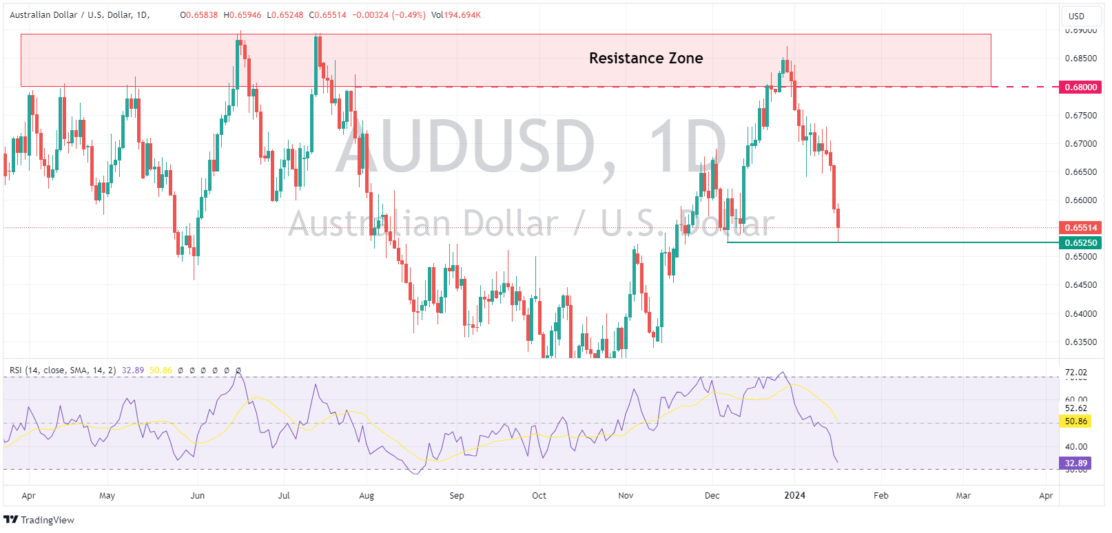 GBP saw decent gains vs the USD and EUR after a beat in the December UK CPI reading where the Y/Y figure came in at 4% vs an expected 3.8%. GBPUSD fell just short of breaching the 1.2700 level, hitting a high of 1.2696 as UK rates markets priced in a lower amount of 2024 rate cuts.
