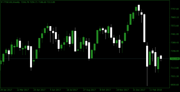 Since reaching its lowest level since the end of 2016 of around 6916, the FTSE100 has somewhat recovered the losses and currently trading at 7213 level (as of 13/3/18).