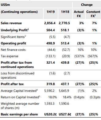 The company was also deprived of the one-off tax benefit of US$130 million from a year ago. Below is a summary of key metrics: