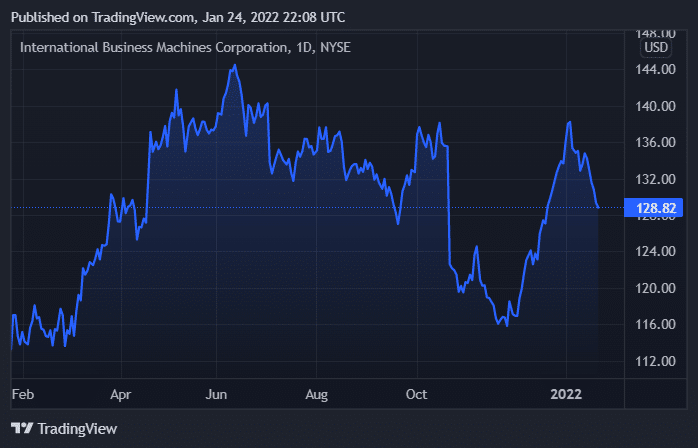 Shares of IBM little changed on Monday, ending the day down by 0.41%. The stock is up by 8.64% in the past year at $128.82 per share.