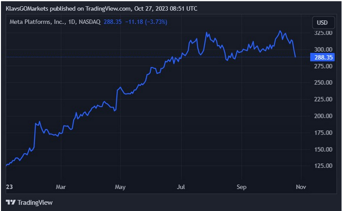 Meta reported revenue of $34.146 billion for Q3 (up by 23% year-over-year) vs. $33.579 billion expected.