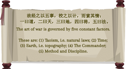 I will use a straightforward chart to illustrate all the factors that mentioned in Sun Tzu’s original text.