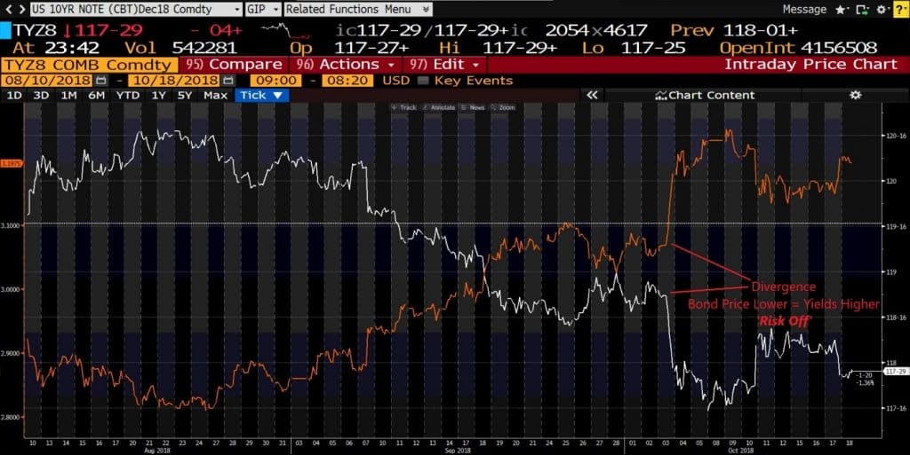 As the bond price trades drastically lower on October 3rd, we also see the yield price jump in unison. The reason for this is because as demand for the bond’s increase, investors pay a higher price but the lower the yield the government has to offer as a return.