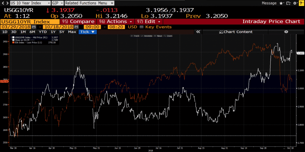 While this is excellent information to know, what we are interested in is how does this help us with our day-to-day trading. As discussed earlier, when bond prices push higher, this is when the market has taken a ‘risk-off’ mindset. Therefore when bonds push lower, and yields go higher, this is when the market has turned ‘risk-on’ and investors are willing to move away from markets deemed relatively safe to slightly more riskier markets seeking higher returns. When this happens, historically what we see is a rally in Equity markets, which is what we can see from the chart below.