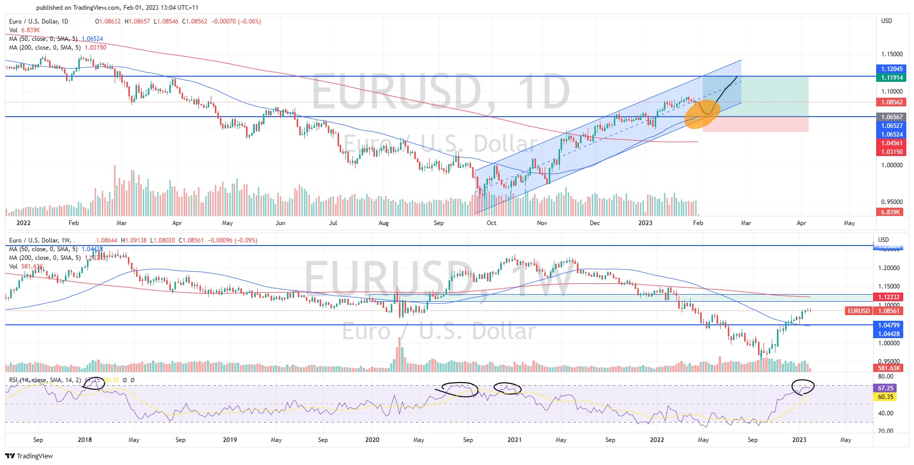 1 February 2023 By SikatradeThe EUR has been on a run since it bottomed in September 2022. From that time, the price is up almost 15% and is currently trading at 1.0863. However, with important economic data to come out of the USA and the next interest rate decision from both the ECB and the Federal Reserve coming out in the next few days the market may find some more direction for the EUR. A Hawkish Federal Reserve may be detrimental for a move to the upside of the EUR, whilst a Dovish response may support more growth in the EUR. In addition, with employment data to come out of the USA softer data may support a more dovish Federal reserve.