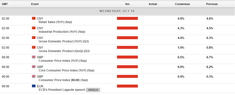 USD traded in a tight range on Tuesday despite a big move higher in treasury yields after a beat in US retail sales figures, the headline rising 0.7% M/M vs 0.3% expected.  DXY whipsawing within a contained range, hitting a high of 106.52 on the initial reaction to the retail sales figure, but quickly paring gains to hit a low of 106.02. Fed member Barkin Fed’s also spoke noting that the FOMC will have a good debate when asked about the chance of a Fed hike at heir November meeting. Looking ahead, Fed speakers are set to continue, ahead of Chair Powell on Thursday, also any further geopolitical updates will be closely watched by USD traders.
