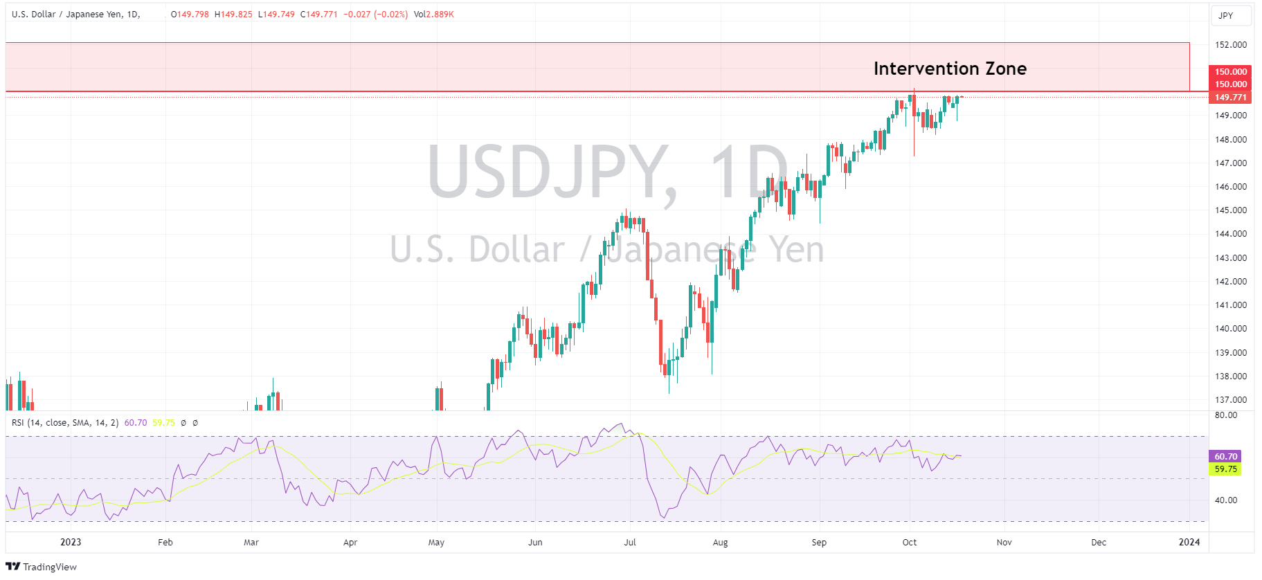 JPY faltered against the USD despite seeing strength early in the session after a Bloomberg report that the BoJ was considering revising their inflation forecasts higher. The surge in the Yen swiftly faded with yield differentials pushing USDJPY higher, to hover just below the 150 “intervention zone”