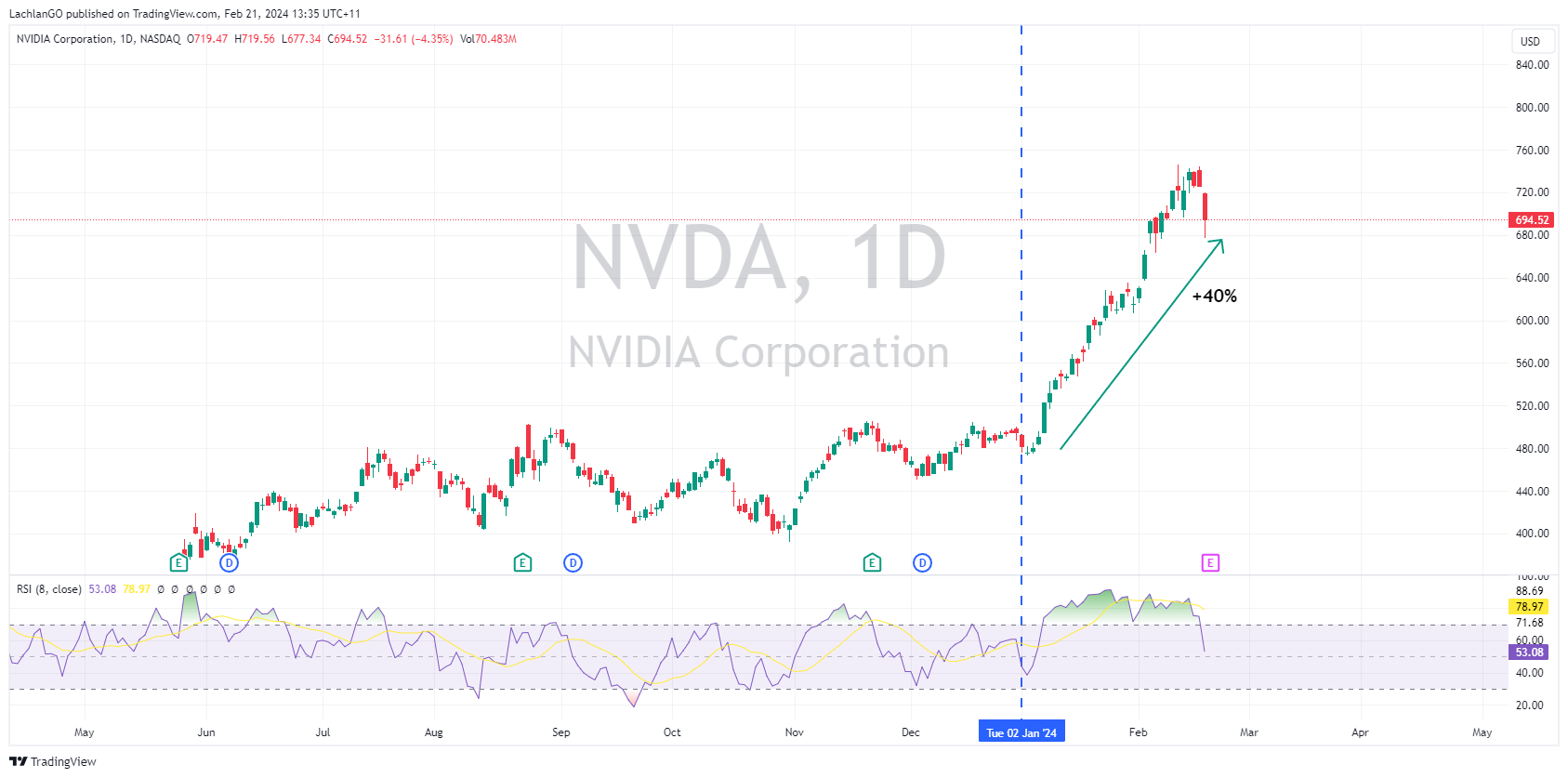 News & AnalysisThe most anticipated US earnings announcement is coming up with NVDA due to report fiscal Quarter ending Jan 2024 earnings after the Wednesday US market close. NVDA has seen a meteoric rise, quintupling in 2023 and up more than 40% so far in 2024, being the number one stock riding AI mania, making this earnings report one that all investors will be paying attention to.