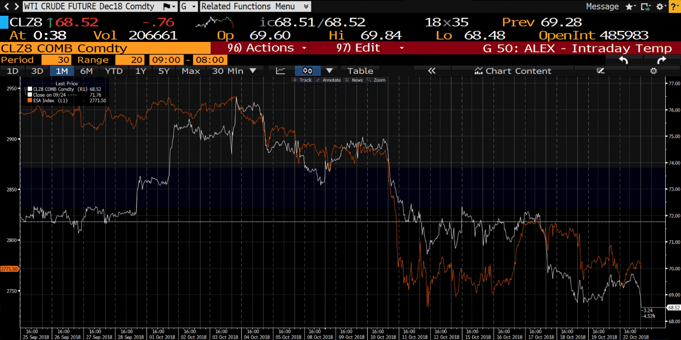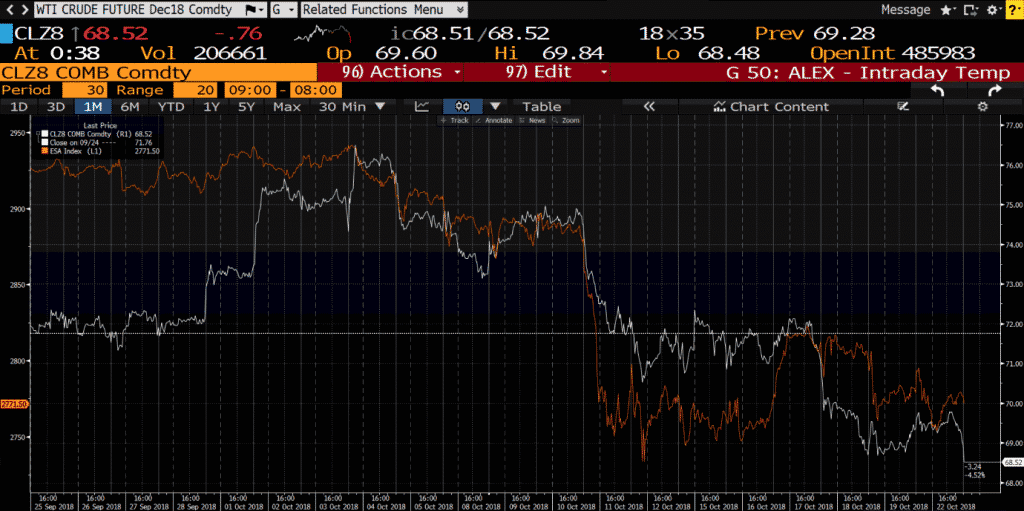 WTI December Contract and S&P Overlay – During the “stock rout”