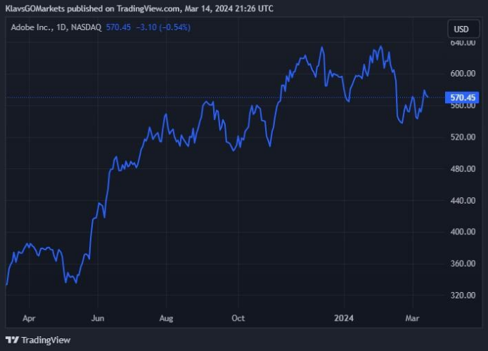 There was no major movement in Adobe share price before the earnings call. The stock was down by 0.54% at $570.45 a share.