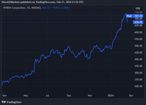 NVIDIA Corporation (NASDAQ: NVDA) recently briefly overtook Amazon.com Inc. (NASDAQ: AMZN) and Alphabet Inc. (NASDAQ: GOOGL) as the fourth largest company in the world after the share price rose to a new all-time high of $746.11 on 14/2/24. Since then, the share price has fallen by over 9%, pushing the company back to sixth place.